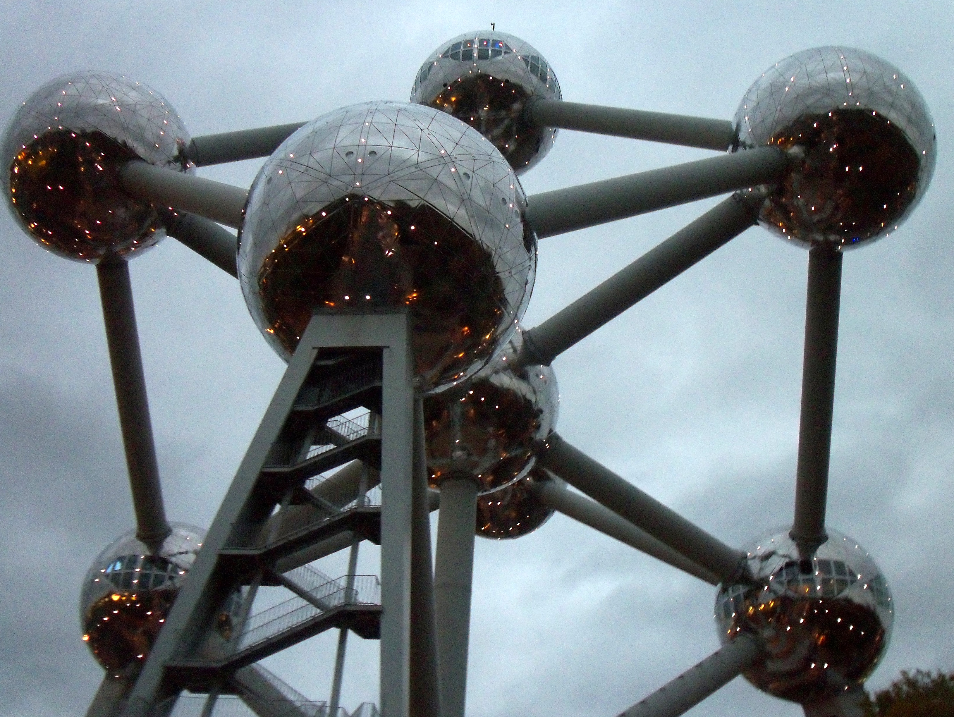 Az utazás következő célja a kb. 8km-re levő Atomium volt, bár itt már csak autóval tettünk egy kört, körülötte, rövid megállással, pár fénykép erejéig. Már 17h után voltunk, s mivel 18h-ig van nyitva, és egyébként is fáradt voltam a kiszálláshoz, az Atomium meglátogatása most kimaradt. Kerekesszékkel egyébként is csak a legdelső gömbbe lehet felmenni, lift csak oda van, bár rokkantaknak ingyenes a belépő, így valahol egálban vagyunk.